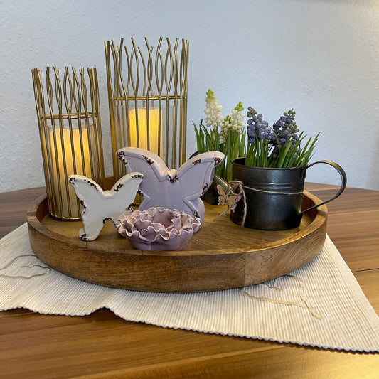 Romantic 2-piece lantern set with round glass insert in an elegant wire structure, black or gold