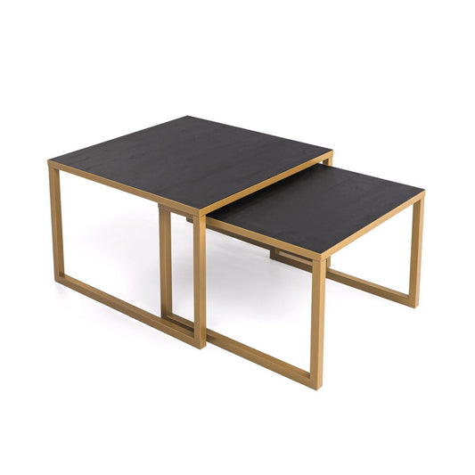 Stalux Coffee table set 'Lisa' 65 and 50cm, color gold / black oak