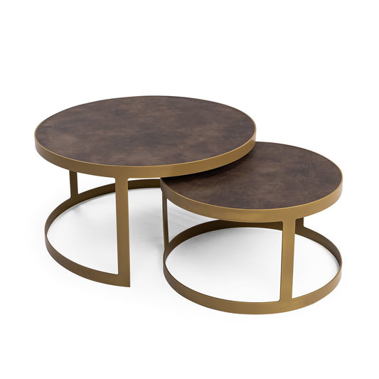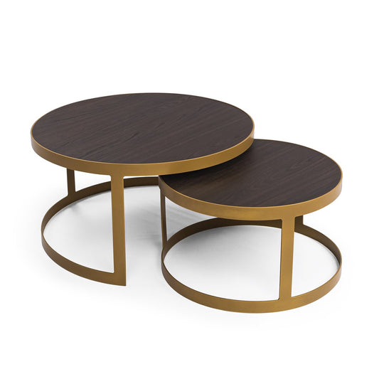 Stalux Coffee table set 'Saar' around 80 and 60cm, color gold / brown wood
