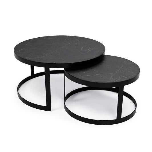 Stalux Coffee table set 'Saar' around 80 and 60cm, color black / black marble