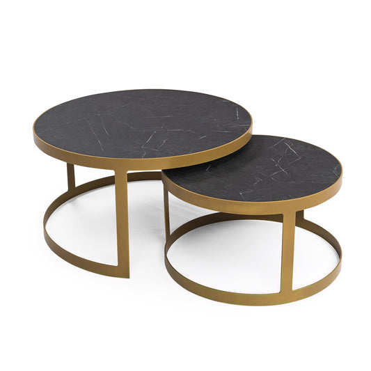 Stalux Coffee table set 'Saar' around 80 and 60cm, color gold / black marble