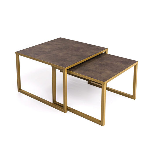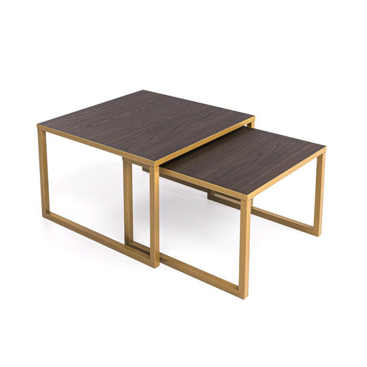 Stalux Coffee table set 'Lisa' 65 and 50cm, color gold / brown wood