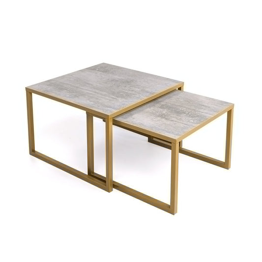 Stalux Coffee table set 'Lisa' 65 and 50cm, color gold / concrete