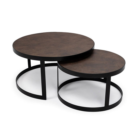 Stalux Coffee table set 'Saar' around 80 and 60cm, color black / brown wood
