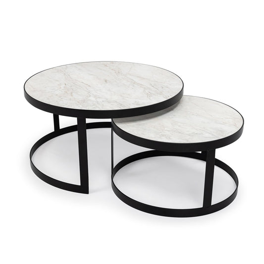Stalux Coffee table set 'Saar' around 80 and 60cm, color black / white marble