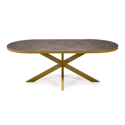 Stalux Flat oval dining table 'Noud' 210 x 100, color gold / concrete
