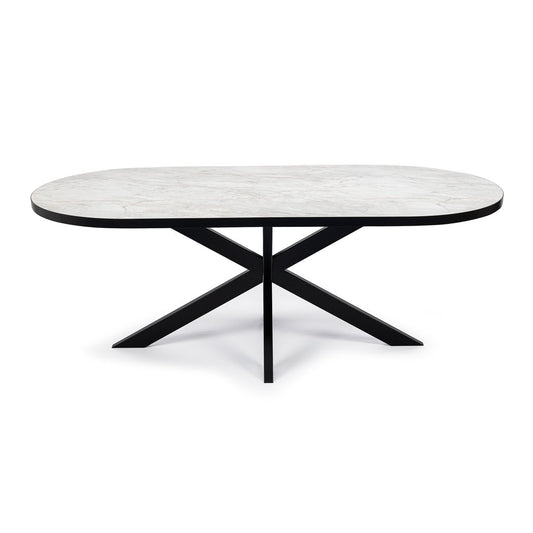 Stalux Flat oval dining table 'Noud' 210 x 100, color black / white marble