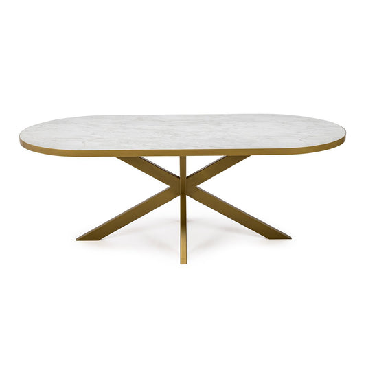 Stalux Flat oval dining table 'Noud' 210 x 100, color gold / white marble