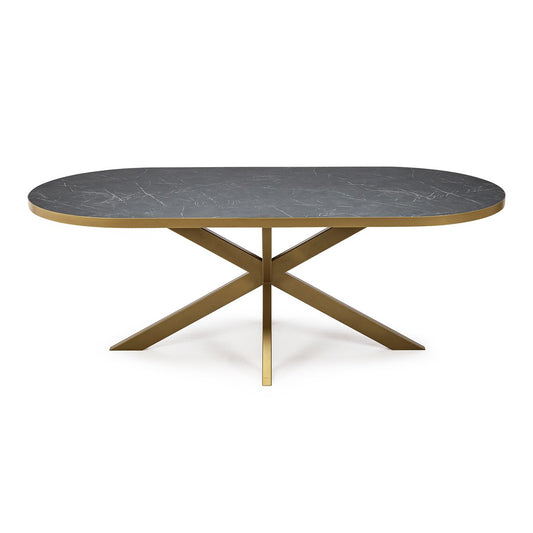 Stalux Flat oval dining table 'Noud' 210 x 100, color gold / black marble