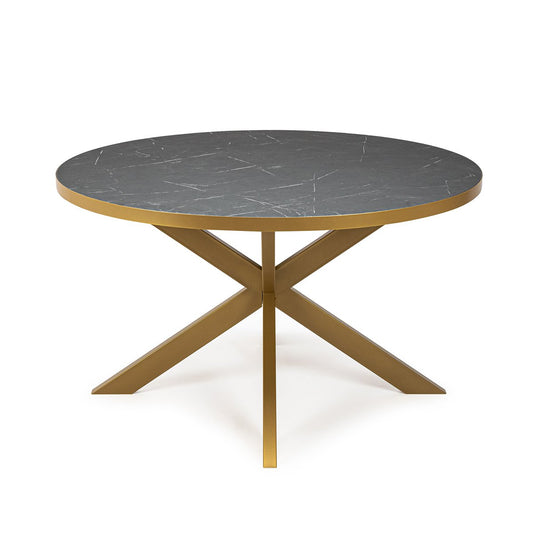 Stalux Round dining table 'Daan' 135cm, color gold / black marble