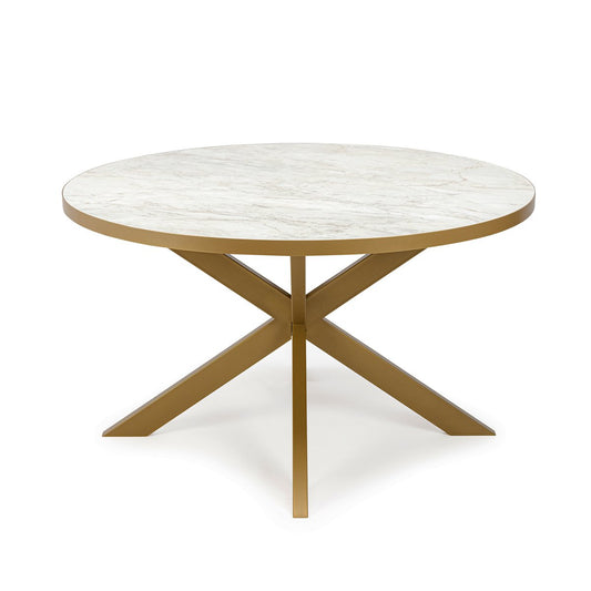 Stalux Round dining table 'Daan' 135cm, color gold / white marble
