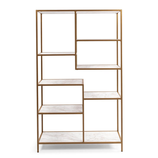Stalux Shelving unit 'Guus' 120 x 200cm, color gold / white marble