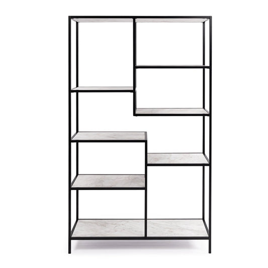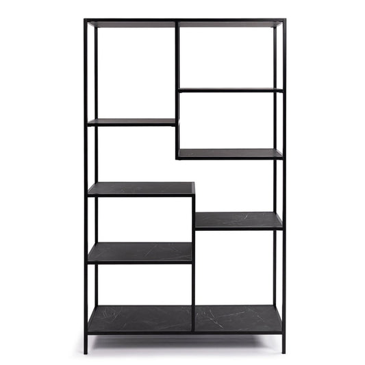 Stalux Shelving unit 'Guus' 120 x 200cm, color black / white marble