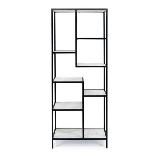 Stalux Shelving unit 'Guus' 80 x 200cm, color black / white marble