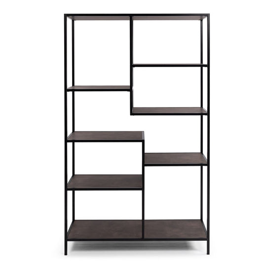 Stalux Shelving unit 'Guus' 120 x 200cm, color black / brown leather look