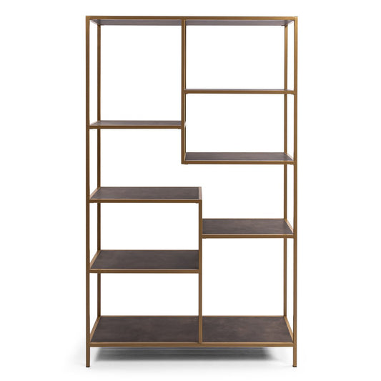 Stalux Shelving unit 'Guus' 120 x 200cm, color gold / brown leather look