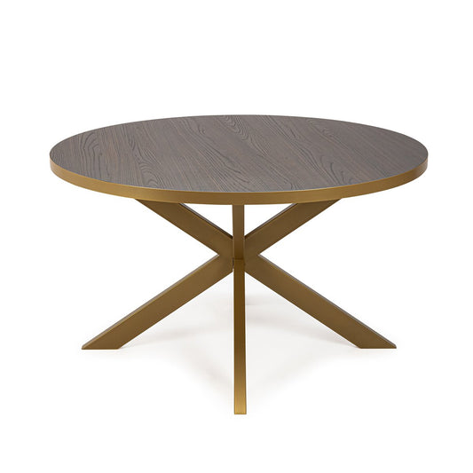 Stalux Round dining table 'Daan' 148cm, color gold / brown wood