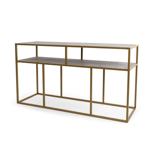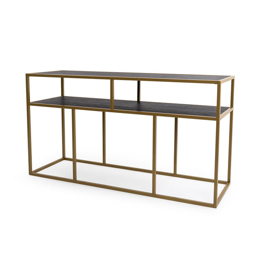 Stalux Side-table 'Teun' 150cm, color gold / brown wood