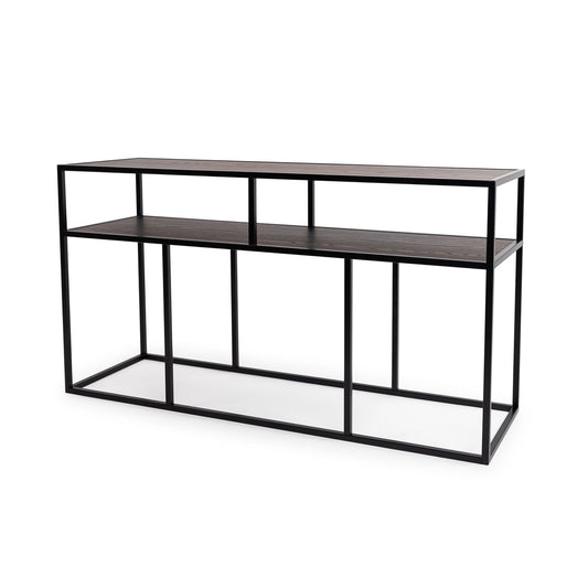 Stalux Side-table 'Teun' 150cm, color black / brown wood