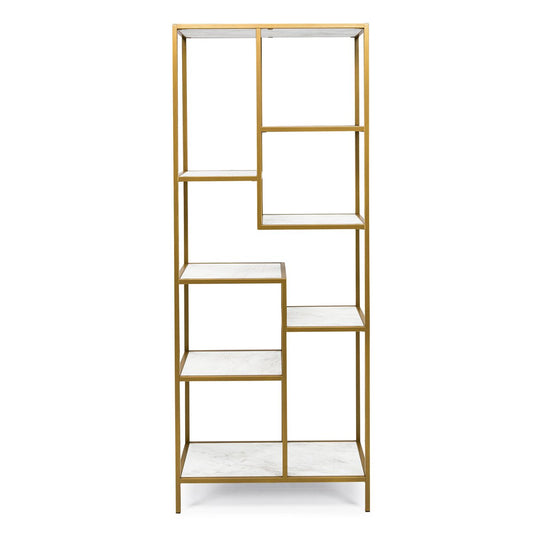 Stalux Shelving unit 'Guus' 80 x 200cm, color gold / white marble