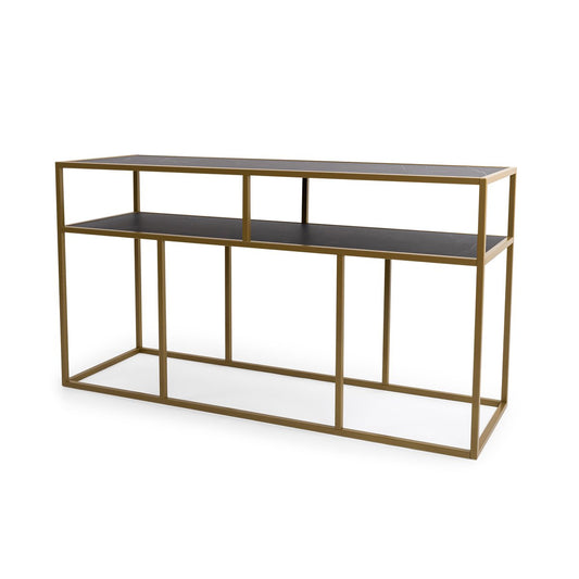 Stalux Side-table 'Teun' 150cm, color gold / black marble