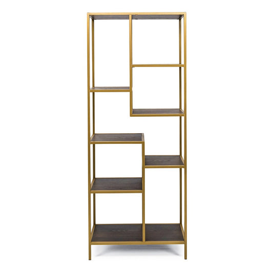 Stalux Shelving unit 'Guus' 80 x 200cm, color gold / brown wood