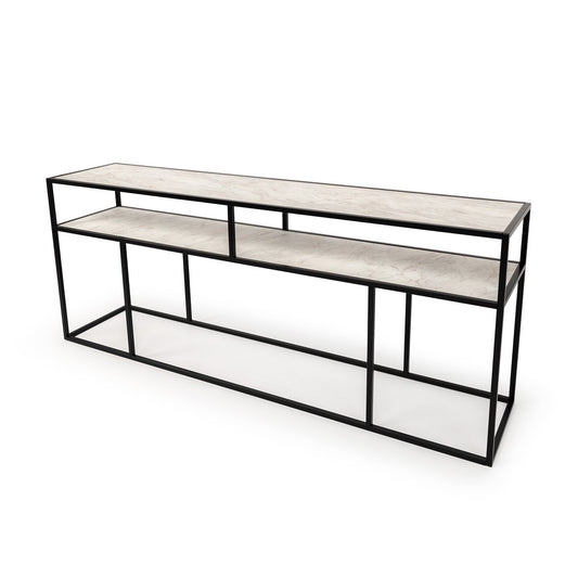 Stalux Side-table 'Teun' 200cm, color black / white marble