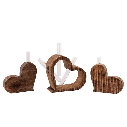 Table decoration hearts 3-piece flower vase wedding gift wedding decoration solid mango wood
