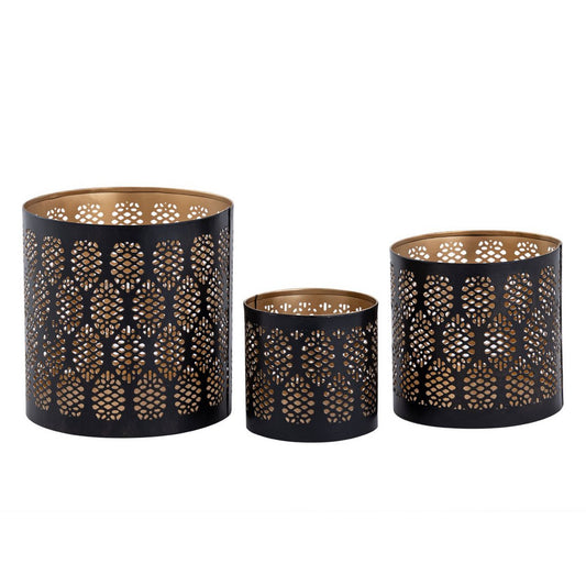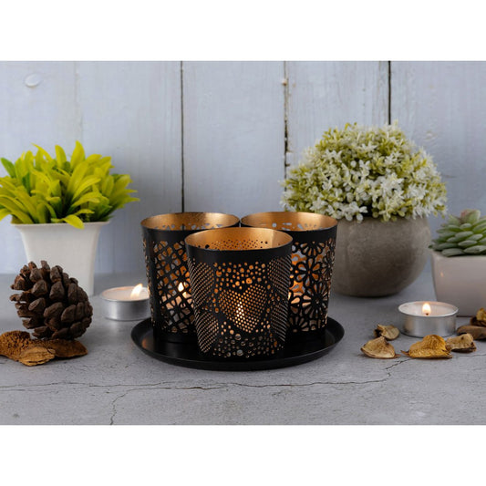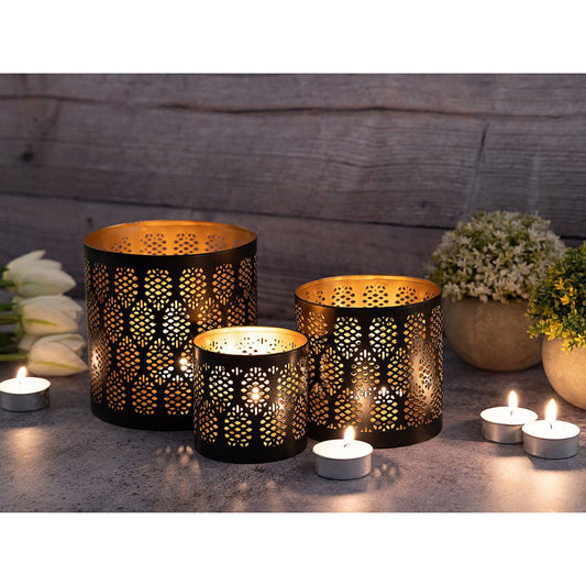 Candle holder set of 3 candlesticks Crete tealight holder round black gold
