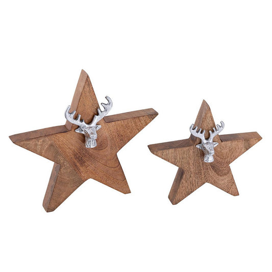 Wooden star figure set of 2 with deer head size 25/19cm Masterbox 10-piece stand mango wood