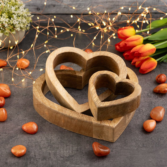 Decorative figure hearts 12x set of 3 wooden figures 24/18/11cm Masterbox wedding decoration mango wood