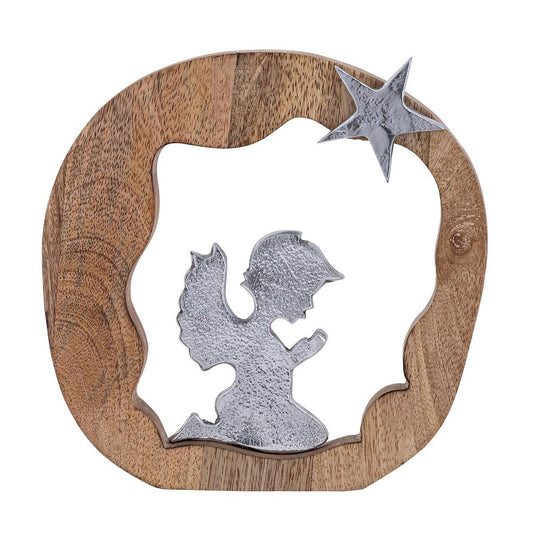 Decorative figure praying angel 20x20cm wooden figure lucky angel mango wood aluminum