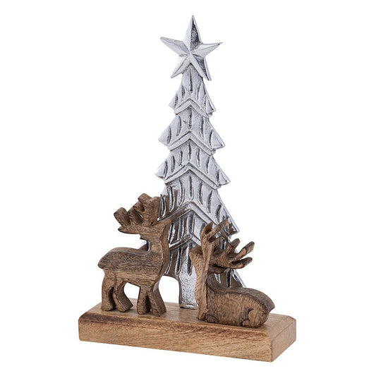 Decorative figure Christmas tree with deer 20x31cm Christmas decoration mango wood aluminum