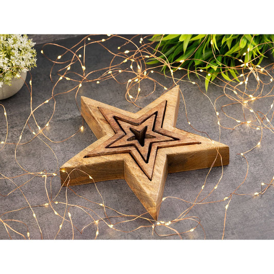 Decorative Star Figures 12x Set of 3 Wooden Figures 26/17/10cm Masterbox Christmas Decoration Mango Wood