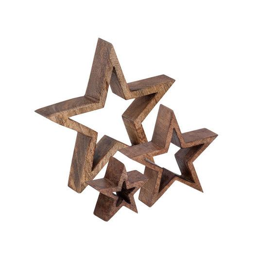 Decorative Star Figures Set of 3 Wooden Figures 26/17/10cm Christmas Decoration Mango Wood