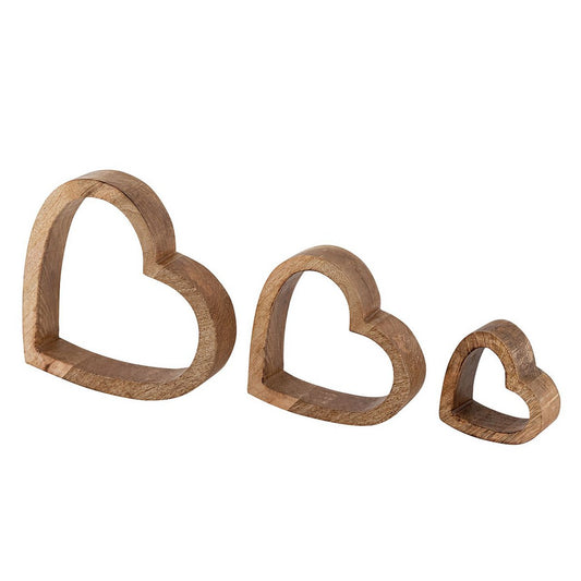Decorative hearts set of 3 wooden figures 24/18/11cm wedding decoration mango wood